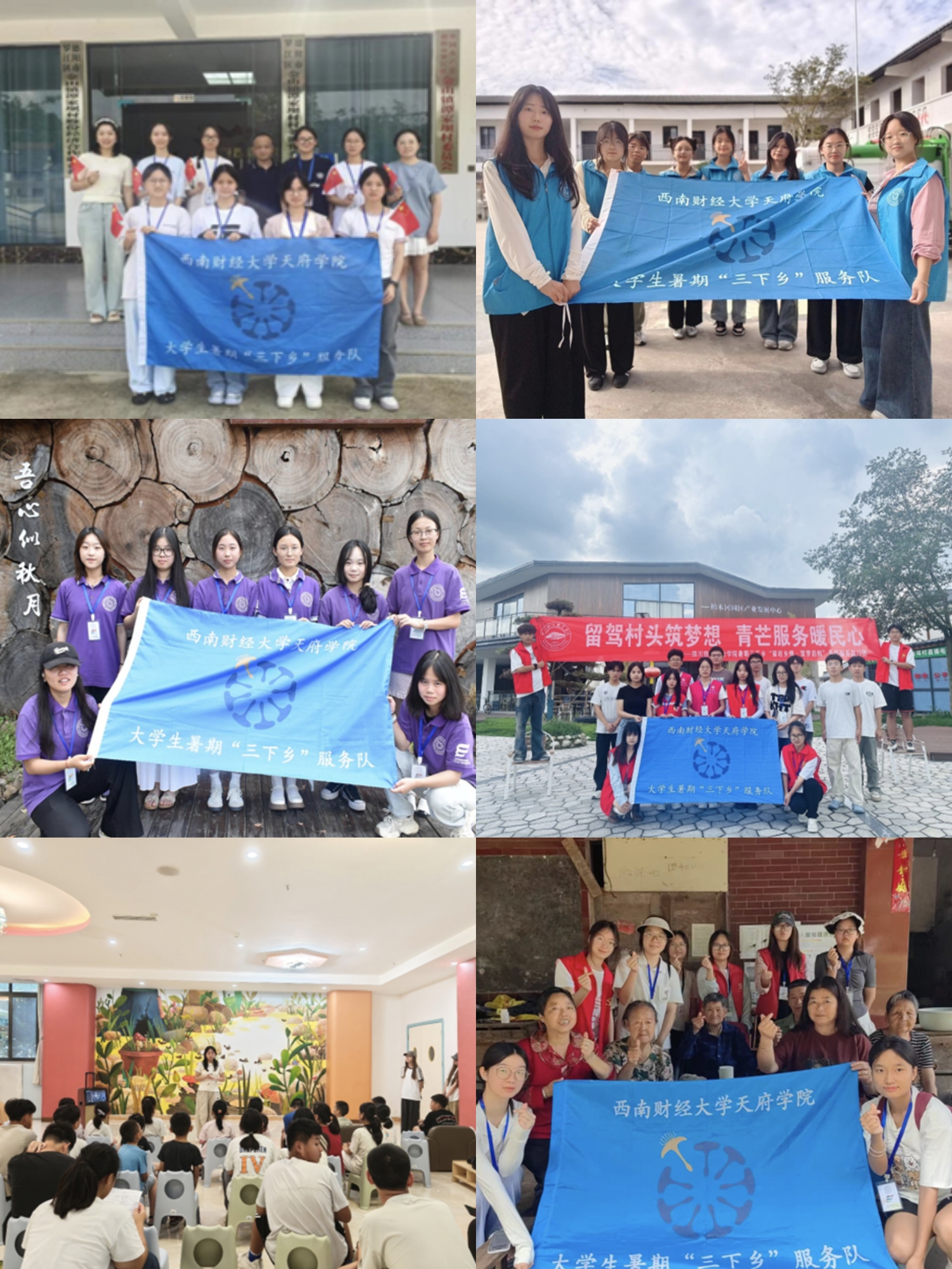 为深入学习贯彻习近平总书记关于“三农”工作的重要论述,全面落实党中央、国务院《关于做好2025年全面推进乡村振兴重点工作的意见》,西南财经大学天府学院会计学院分党委统筹谋划、团总支精心组织,于7月7日至14日组建青衿逐梦队、绿野方舟队、启智星火宣讲队、青草之愿队、鸿鹄实践队、青苗逐梦队6支高质量实践团队,分赴浙江天台、四川南充、邛崃等地,围绕“产业振兴、文化铸魂、民生服务、儿童关爱”四大维度,开展一场有深度、有温度、有广度的暑期“三下乡”社会实践。师生们把课堂搬进田间地头,把论文写在大地山河,以青春之力为全面推进乡村振兴注入澎湃动能。