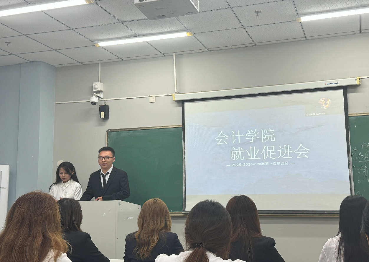 为有序推进会计学院毕业生就业工作进程,确保就业促进会能够在新学期内更加精准地服务于广大同学,助力每位学子顺利迈向职业生涯的新起点,2025年9月4日,会计学院于成都西区1-318教室召开2026届就业促进会第一次全体大会,本次会议由就业促进会主席团敬荟博主持,就业促进会指导老师宋雪娇、张国燕及全体成员参加会议。