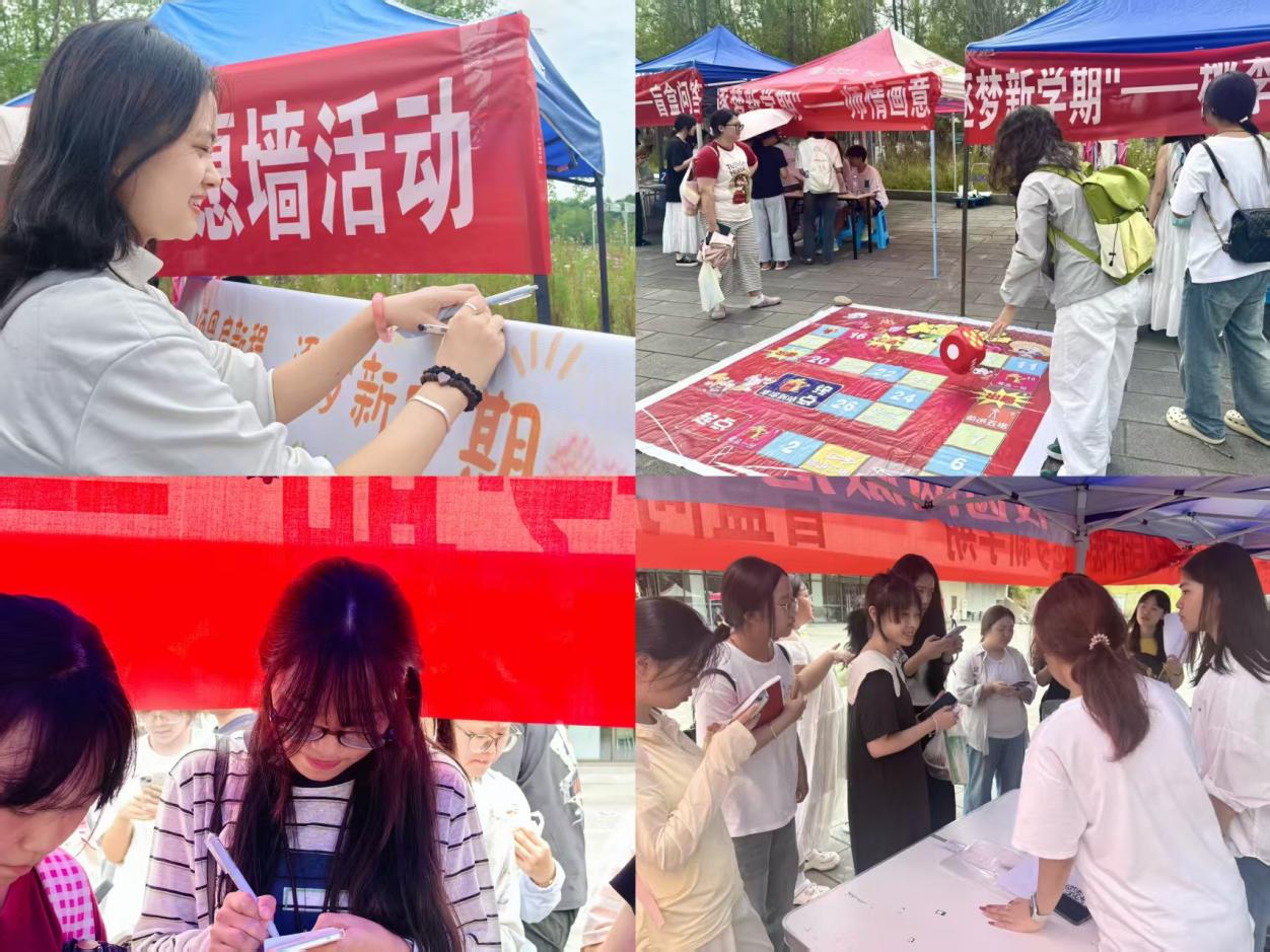 活动期间,校区内设置了三大特色活动点位,各点位精心设计、亮点十足,吸引众多师生参与。“心愿墙活动”在食堂门口展开,同学们将新学期目标、对未来憧憬及教师节祝福写在便利贴贴满展板,既为同学们提供了梳理成长方向的平台,也让教师真切感受到学生的感恩之心,成为校园里传递温暖的“情感阵地”;“师情画意”活动里,同学们用 A5 画纸描绘课堂教学、师生互动场景,既激发了同学们的艺术创造力,又通过画作定格师生间的珍贵瞬间,让无声的情感以可视化形式留存;“盲盒问答” 中,参与者抽取盲盒回答校园知识问题,在趣味游戏中加深对校训、宿舍管理等校园规则的记忆,助力新生更快融入校园生活,强化对学校的归属感。
