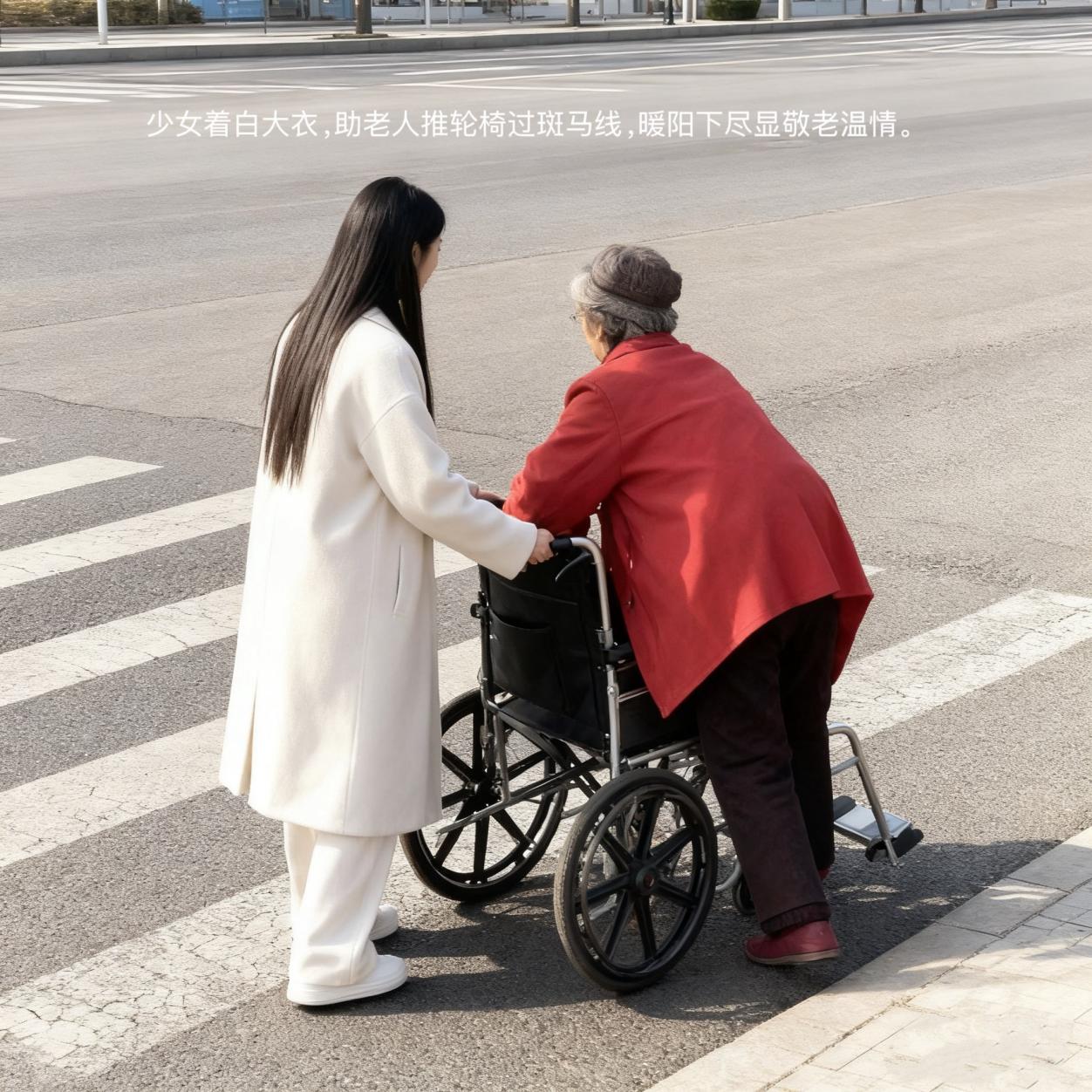 暖阳下的敬老温情:斑马线旁的爱心搀扶