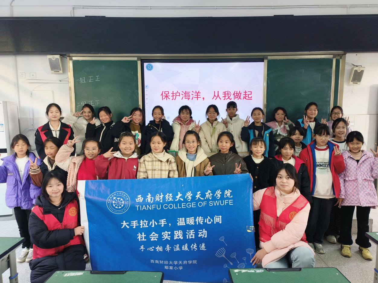 探秘蔚蓝世界,守护浩瀚家园。11月18日,西南财经大学天府学院会计学院第二党支部“大手拉小手、温暖传心间”支教团队走进鄢家小学,开展一场以“观海底生灵,知海洋生态”为主题的海洋生态知识科普活动。志愿者以生动有趣的方式,带领孩子们潜入“海底世界”,探索海洋奥秘,传递环保理念,为孩子们的科学启蒙与生态意识培育注入新活力。