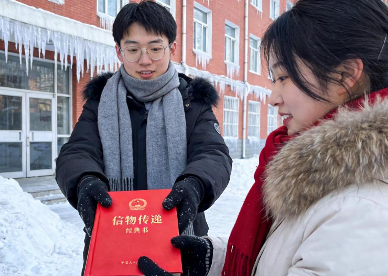 本次活动设置两大创意板块,让红色文化与冬日暖意巧妙相融,激发了同学们的创作热情。在“冬日红传・信物接力”板块中,参与者以“红色信物+冬日物件”为创作核心,用镜头定格红色精神与暖冬氛围的碰撞瞬间。红围巾裹着的泛黄革命家书、暖手宝旁静静陈列的军功章、冬日茶杯边摊开的《觉醒年代》与《红岩》等经典书籍,一张张创意抓拍图,将红色记忆与冬日日常紧密相连;更有同学定格校园里交接红色信物的温暖场景,或是展示印刻“我爱你中国”字样的红色物件,让“红色接力”的主题在镜头流转间生动呈现,尽显“雪映红物・薪火相传”“冰凝赤心・我爱中国”的深厚情怀。“暖冬红笺・红色书摘”板块则以笔墨为媒,传递红色力量。同学们选取红色经典著作、革命诗词、英雄家书里的经典片段,以硬笔或软笔书法的形式精心书写,带有雪花、梅花、暖炉等冬日元素的信纸与宣纸,让红色文字更添几分暖意。