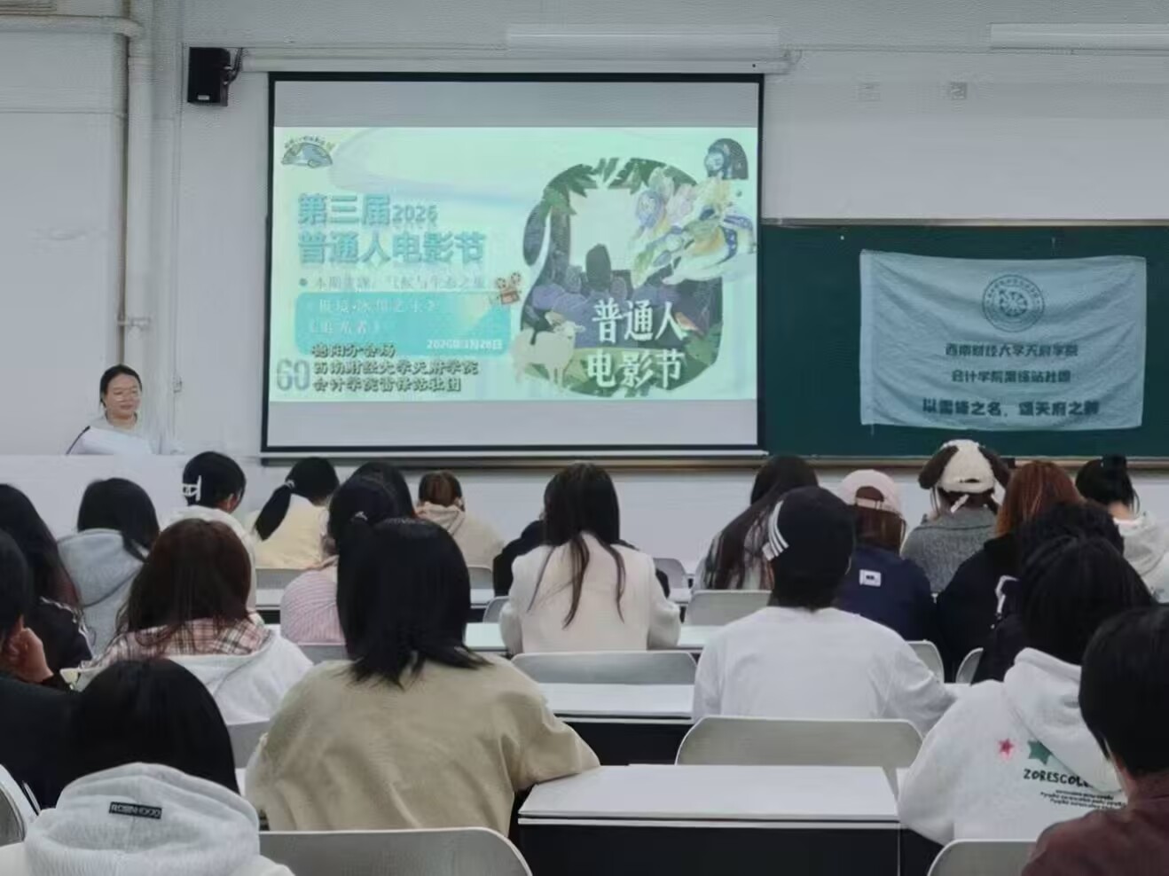 3月28日,会计学院雷锋站社团承办的“与自然共生,为未来而行”第三届普通人电影节活动顺利开展,共庆地球一小时全球二十周年。活动在大教室F201-204同步展播《极境:冰川之上》《追光者》两部自然环保纪录片,组织学生连线上海主会场与纪录片主创团队线上对话,还设置小红书打卡互动赢周边环节,以影像传递生态环保理念,号召全体学子以低碳行动参与环保,用实际行动守护共同的家园,活动吸引400名学生线上报名参与。