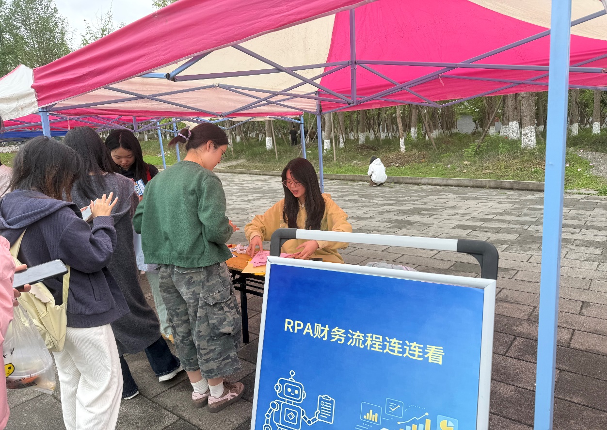 2026 年 4 月 21 日至 22 日,西南财经大学天府学院会计学院 RPA 财务机器人俱乐部在德阳校区蒲公英广场开展了“AI 汇财经,数智创未来” 第三届新财经文化节系列活动。本次活动由德阳校区第一学生社区主办、会计学院 RPA 财务机器人俱乐部承办,面向会计学院全体同学,以趣味互动的形式普及 RPA 财务自动化知识,助力数智化财经人才培养。