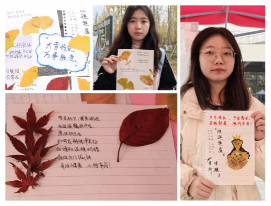 “冬日温情,落叶传情”,是一项充满温情与创意的校园活动。同学们满怀热情,纷纷搜集起校园内外那些被季节遗忘的落叶,将它们小心翼翼地粘贴在卡纸上,并用心地配上温馨的文字。同学们巧妙地利用落叶为媒介,传递出了一份份真挚的情感与祝福,让这个寒冷的冬日充满了温情与感动。