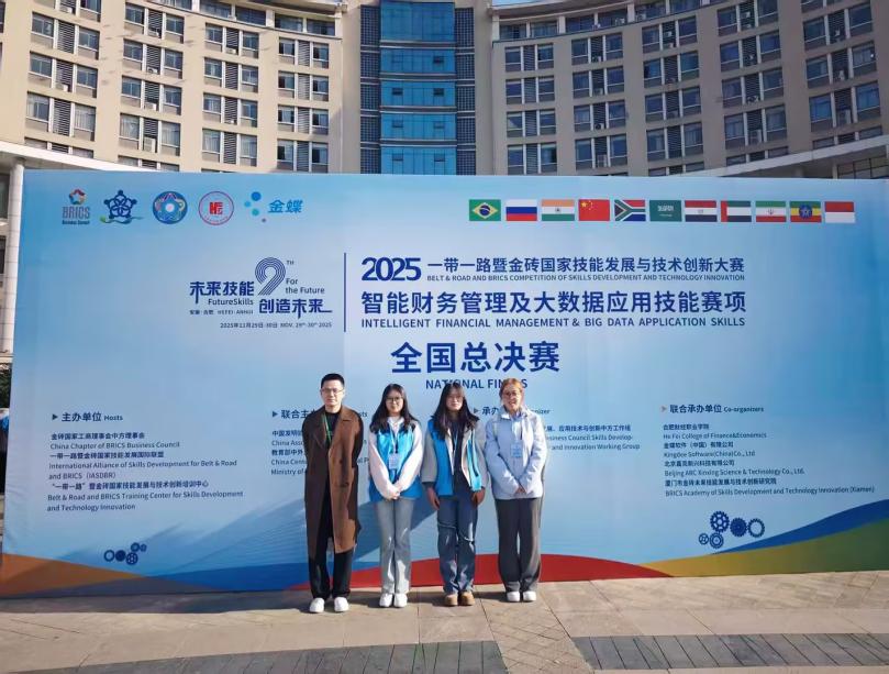 近日,2025年“一带一路”暨金砖国家技能发展与技术创新大赛智能财务管理及大数据应用技能赛项全国总决赛在安徽合肥圆满落幕。本次大赛由金砖国家工商理事会中方理事会与“一带一路”暨金砖国家技能发展国际联盟联合主办。会计学院学子凭借扎实的专业功底和出色的团队协作,从全国百余支参赛队伍中脱颖而出,斩获国家级三等奖1项、省级二等奖1项及省级三等奖2项,创历史最佳成绩。