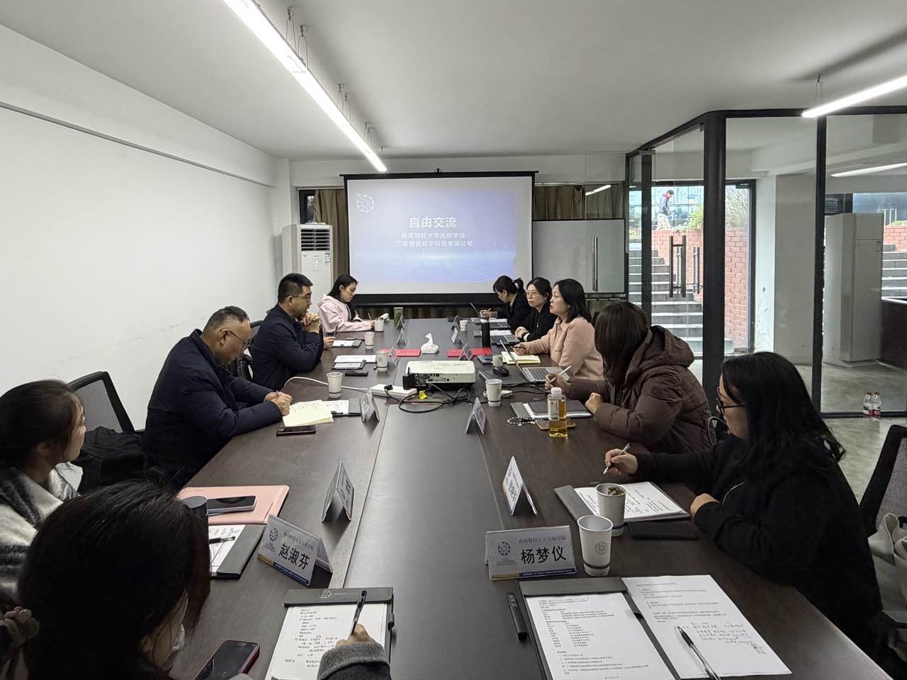 11月20日上午,西南财经大学天府学院与广东翰智数字科技有限公司校企合作签约仪式在成都西区31栋会议室成功举行。会计学院长陈真子、副院长陈茜、副院长张娟、会计系主任周慧灵、财务管理系主任常莹、实验教学中心主任余凤娟、学生竞赛中心主任张晓华和两位教师代表出席仪式。广东翰智数字科技有限公司总经理瞿刚、运营总监傅金能、产教融合部经理曹太先出席本次活动。此次签约标志着双方在数智化人才培养领域的合作正式启动,为推动产教融合、校企协同育人注入了新动能。