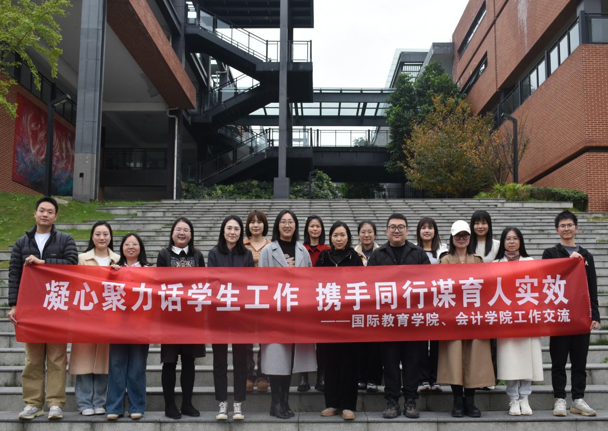 11月13日下午,国际教育学院与会计学院于德阳校区图书馆501共同开展了学生工作交流研讨会。国际教育学院分党委书记詹议,会计学院分党委副书记孟仁丹等两院领导及辅导员团队参会,围绕“凝心聚力话学生工作,携手同行谋育人实效”主题展开深度交流。会议由会计学院分党委副书记孟仁丹主持。