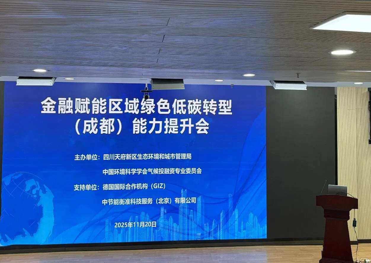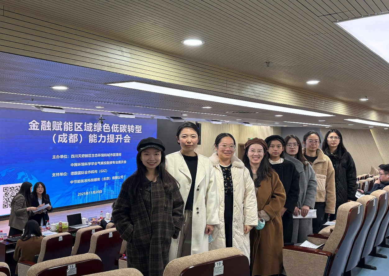 为深入把握绿色金融与低碳转型领域的政策导向与实践路径,拓宽教师学术视野与教学科研思路,11 月20日,会计学院李唐晓月、汪晶晶、何婷等8名骨干教师受邀参加在成都天府新区举办的 “金融赋能区域(成都)绿色低碳转型能力提升会”。本次会议由四川天府新区生态环境和城市管理局、中国环境科学学会气候投融资专业委员会主办,德国国际合作机构(GIZ)、中节能衡准科技服务(北京)有限公司联合支持,吸引了来自政府部门、高校、行业协会、金融机构及企业的70余名专家学者出席。会议聚焦试点政策协同、机制模式创新、金融政策落地等核心议题,为金融机构、企业及高校搭建了深度交流平台。