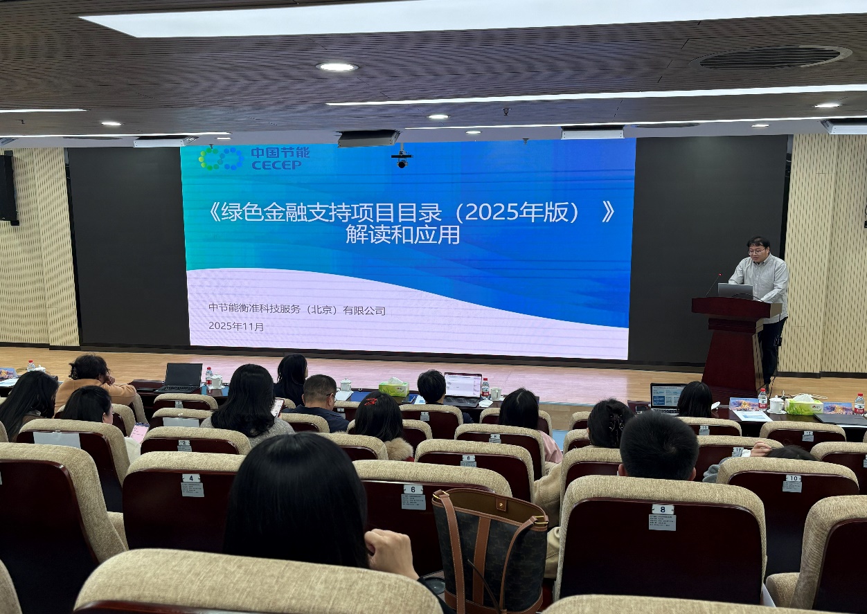 会上,来自中节能衡准科技服务(北京)有限公司的四位专家分别开展专题授课。气候投融资中心主任葛慧围绕气候投融资试点实践与典型案例,系统解读了气候投融资的背景、试点经验、实践案例、未来工作动态及思考建议;高级项目经理田章琪针对《绿色金融支持项目目录(2025 年版)》的编制逻辑、应用要点及实操问题进行深度剖析;总经理杨林分享了金融机构碳核算的国际标准、国内进展及实务方法;成都分公司总经理张新蓉则聚焦转型金融政策、重点行业转型路径及金融产品创新实践展开详细阐述。专家们的讲解既有顶层设计解读,又有一线案例分析,为参会者带来了绿色金融领域的前沿知识与实践经验。