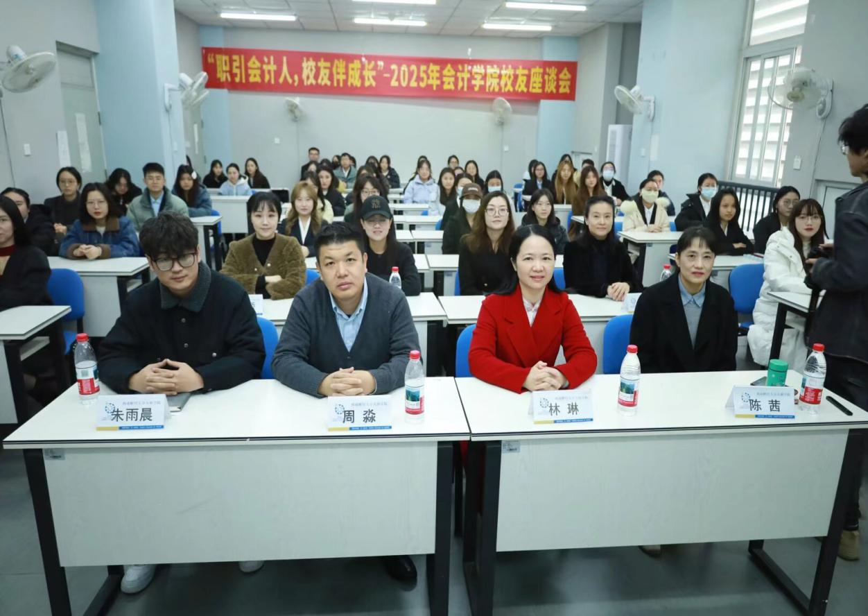 为凝聚校友力量,强化联络纽带,帮助学子明晰就业方向、树立科学职业规划,11月22日上午,会计学院于成都西区1-318教室举行了2025年会计学院校友就业交流座谈会,本次会议由会计学院教师杨益主持,学校校友工作处副处长周淼、会计学院副院长陈茜,会计学院分党委副书记林琳等老师和毕业班45名学生参与本次座谈会。