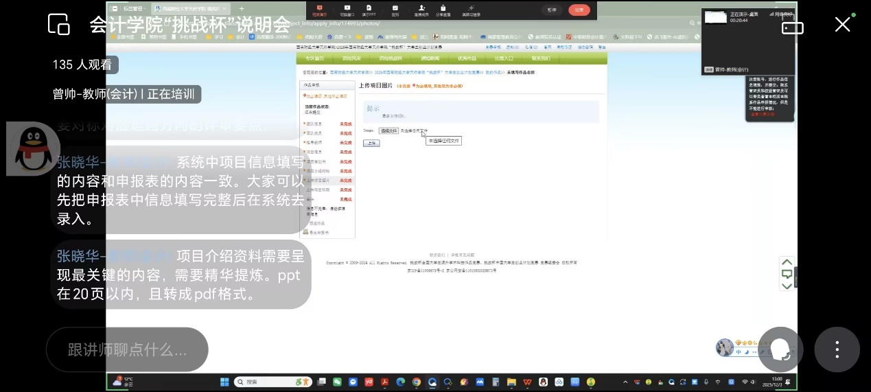 此外,曾帅还对当前赛事平台的操作流程进行了现场演示,详细说明了作品提交的规范性要求,包括文件格式、提交时间节点以及常见错误避免等内容,以确保所有参与者能够顺利参赛并提高作品质量。