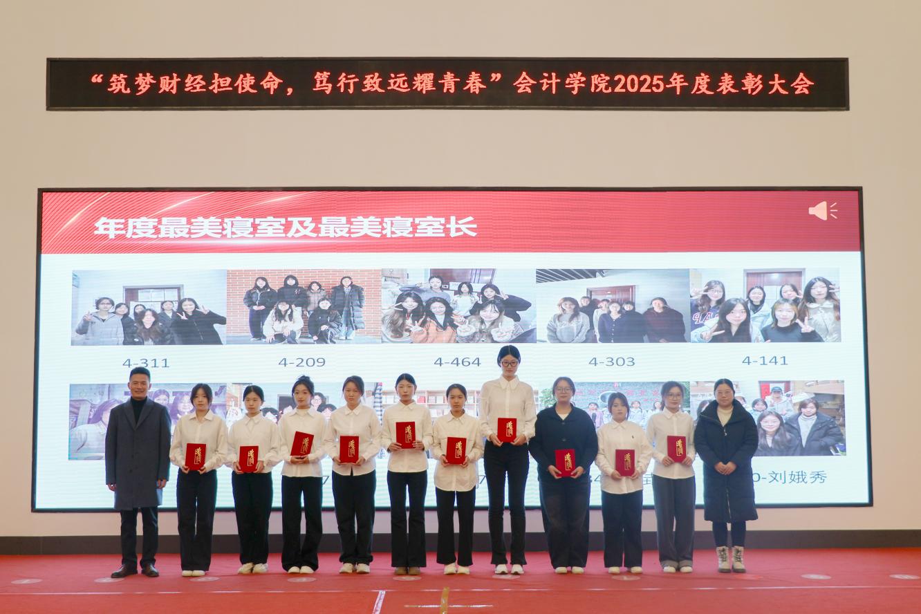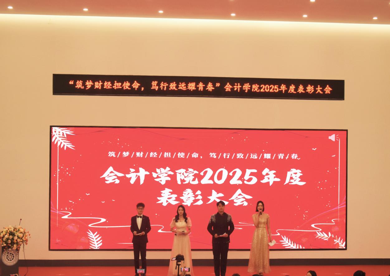 最终,大会在温馨感人的氛围中圆满落下帷幕。此次表彰大会不仅是对会计学院2025年育人成果的集中展示,更是一次凝聚人心、鼓舞士气的动员大会。未来,会计学院将继续坚守育人初心、勇担时代使命,以更加昂扬的姿态、更加务实的作风,培育更多高素质新财经人才,在高质量发展的道路上砥砺前行,绽放更耀眼的光芒!