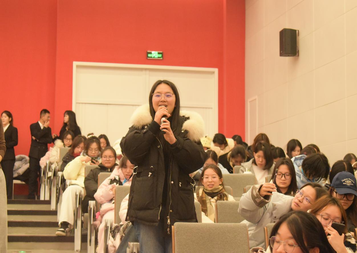 优秀学生代表张雅娴感慨道,能作为学生代表见证这一荣光时刻倍感荣幸。回望过去一年,学院全体师生凝心聚力,涌现出许多先进典型。她分享了自己入选九三阅兵民兵方阵的经历,那段追求“米秒不差”的时光让她深刻懂得,每一份荣光背后都是日复一日的坚守与全力以赴的拼搏,这份精神力量也融入了求学之路。她表示,获奖集体与个人的奋斗身影值得每个人学习,就像阅兵方阵离不开每一个人的努力,学院的成绩也凝聚着全体师生的付出。新的一年,愿大家以榜样为镜,书写更加璀璨的青春华章。