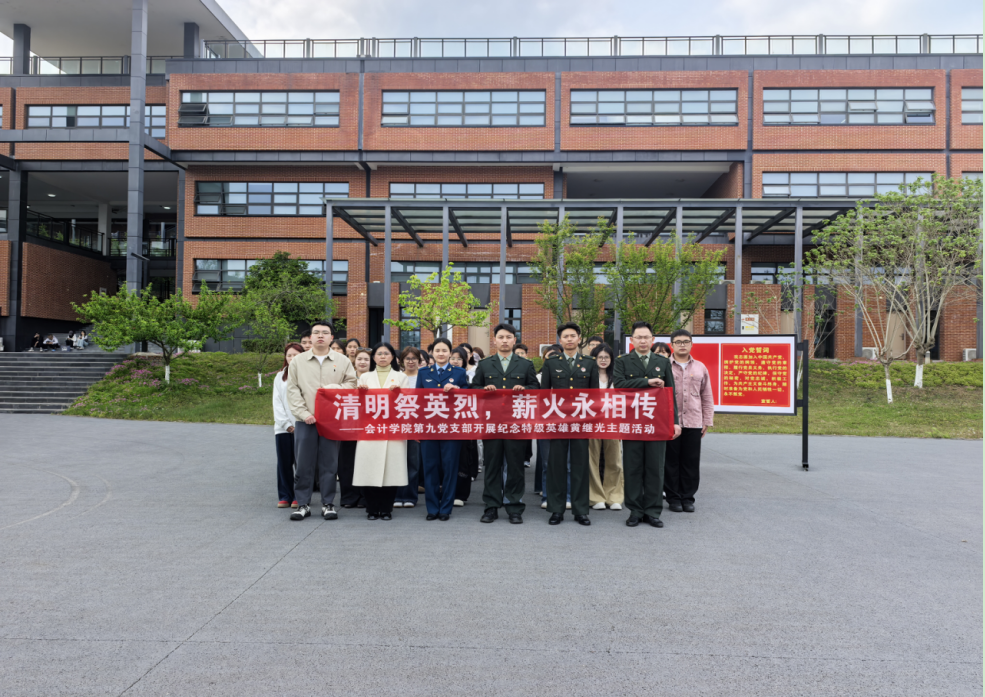4月1日,会计学院第九党支部师生党员在德阳校区校馆共建的“黄继光纪念梨树”下,开展“缅怀特级英雄黄继光”主题活动。师生们静默肃立、献花致敬,深情诵读黄继光烈士的家书,并在党旗下重温入党誓词。一字一句,既是跨越时空的对话,也是初心使命的再确认。