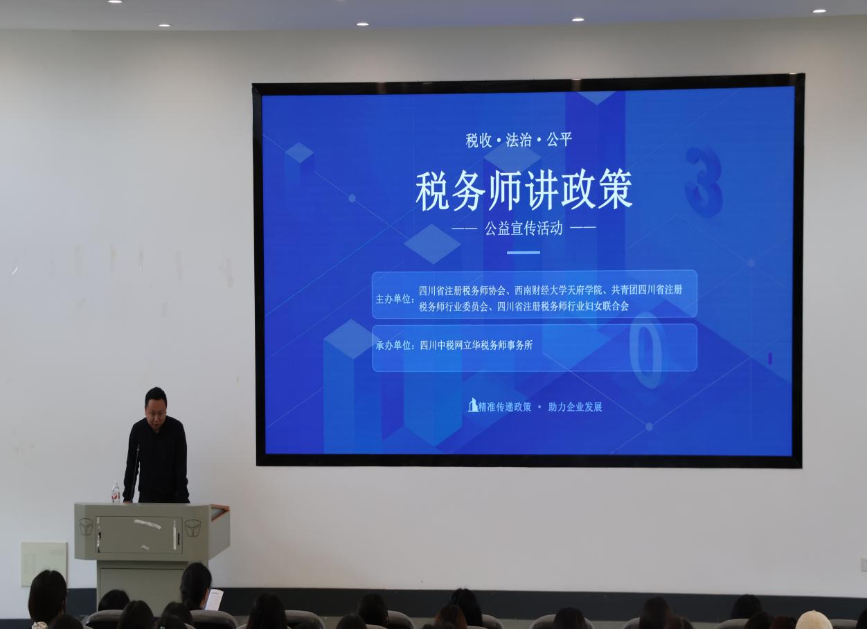 为深化新财经人才培养,助力财税学子明晰职业方向、掌握备考方法,4月21日,会计学院举办了税务师职业发展讲座活动。本次讲座聚焦税务师职业发展与备考经验,特邀四川中税网立华税务师事务所高级项目经理、培训总监殷剑文主讲,会计学院教师杨益主持。