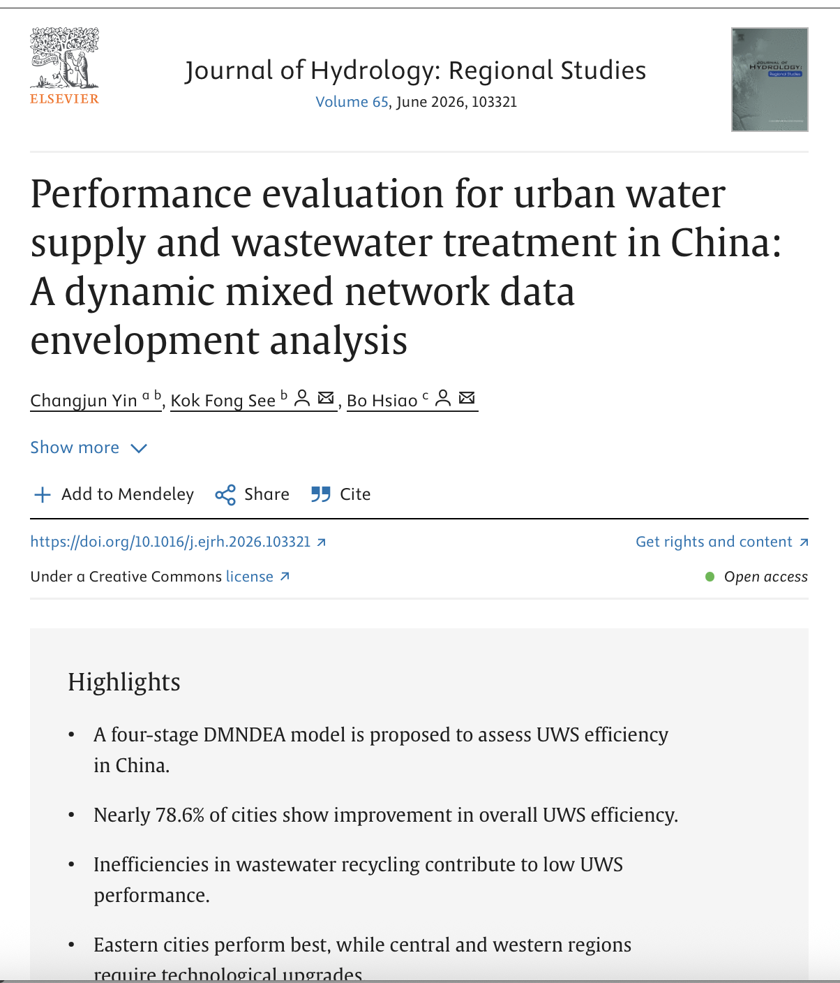 研究聚焦于城市供水、污水治理绩效评估、资源配置,创新性提出动态网络数据包络分析模型,对我国城市水务系统运营效能进行科学测算与多维分析。研究结论可为公共事业绩效管理、绿色转型、水务治理优化提供理论支撑与决策参考。该成果既体现了管理会计、资源环境、工程管理等领域的交叉融合,也展现了会计学科服务绿色发展与地方高质量发展的实践价值。