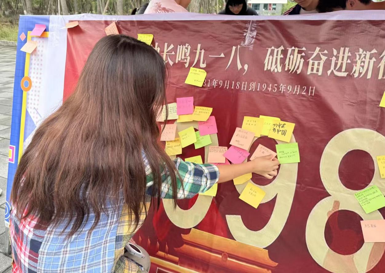 为引导广大青年铭记民族历史、弘扬爱国主义精神,2025年9月16日至18日,会计学院党建办公室于德阳校区食堂门口举办九一八事变主题纪念活动。以线下互动的活动方式,带领学生们在回望中重整信念,在缅怀中凝聚力量。