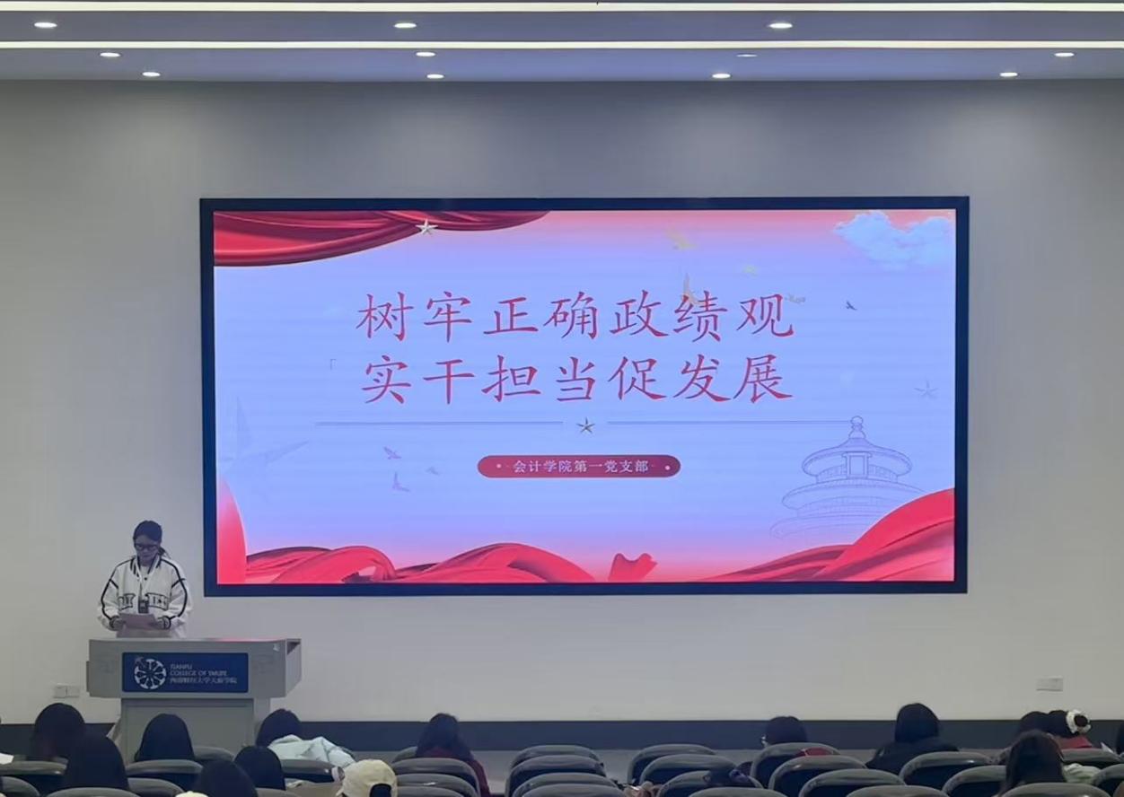 为引导支部党员树牢正确政绩观,强化实干担当的思想与行动自觉,以务实作风助推学院高质量发展,2026年3月19日,会计学院第一党支部组织开展以“树牢正确政绩观,实干担当促发展”为主题的党日活动,党支部师生党员及入党积极分子积极参与此次活动。