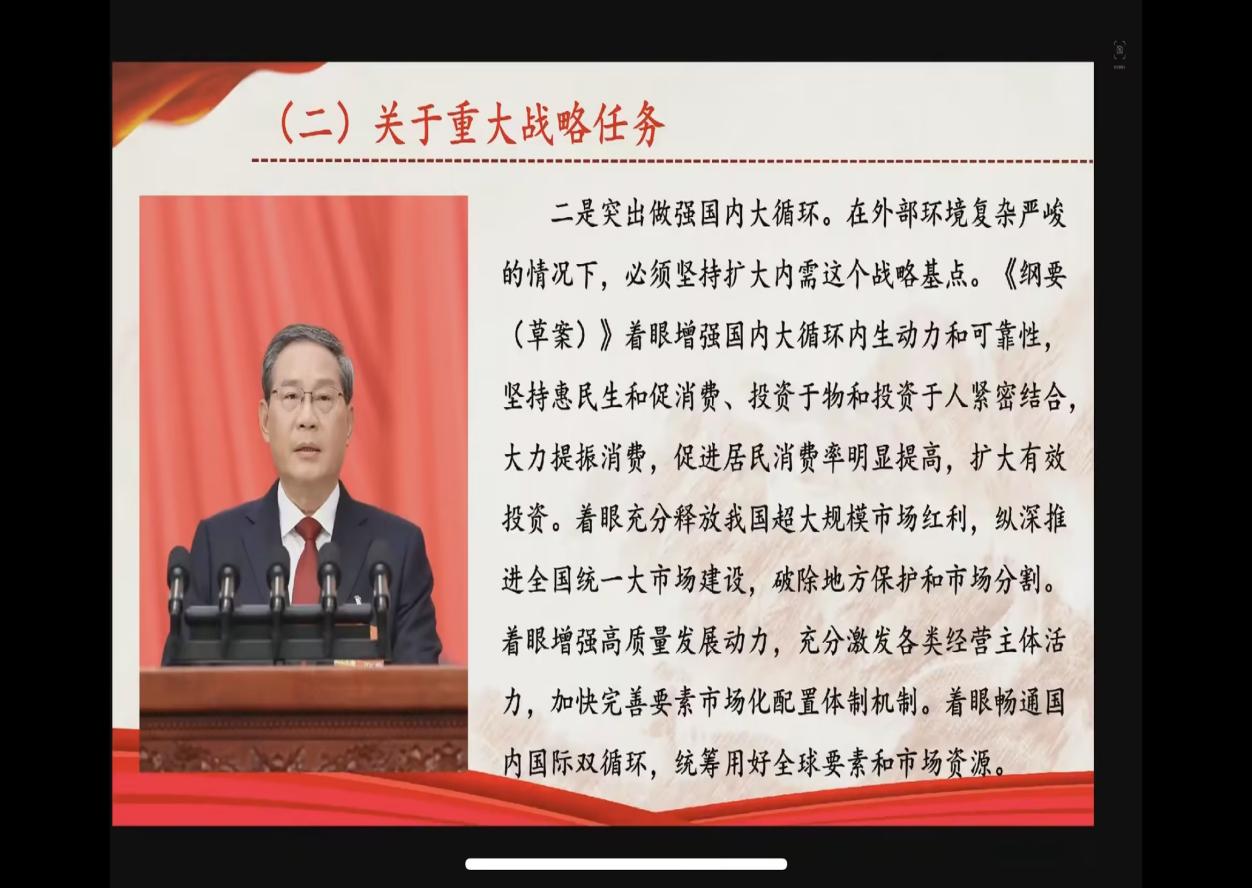整场学习内容系统、解读深入,有效帮助全体教师深化对报告精神的理解,进一步增强了立足教学岗位、担当育人使命的思想自觉和行动自觉。与会教师表示,将以此次学习为契机,切实把两会精神融入教育教学实践,在“十五五”开局之年展现新作为、作出新贡献。