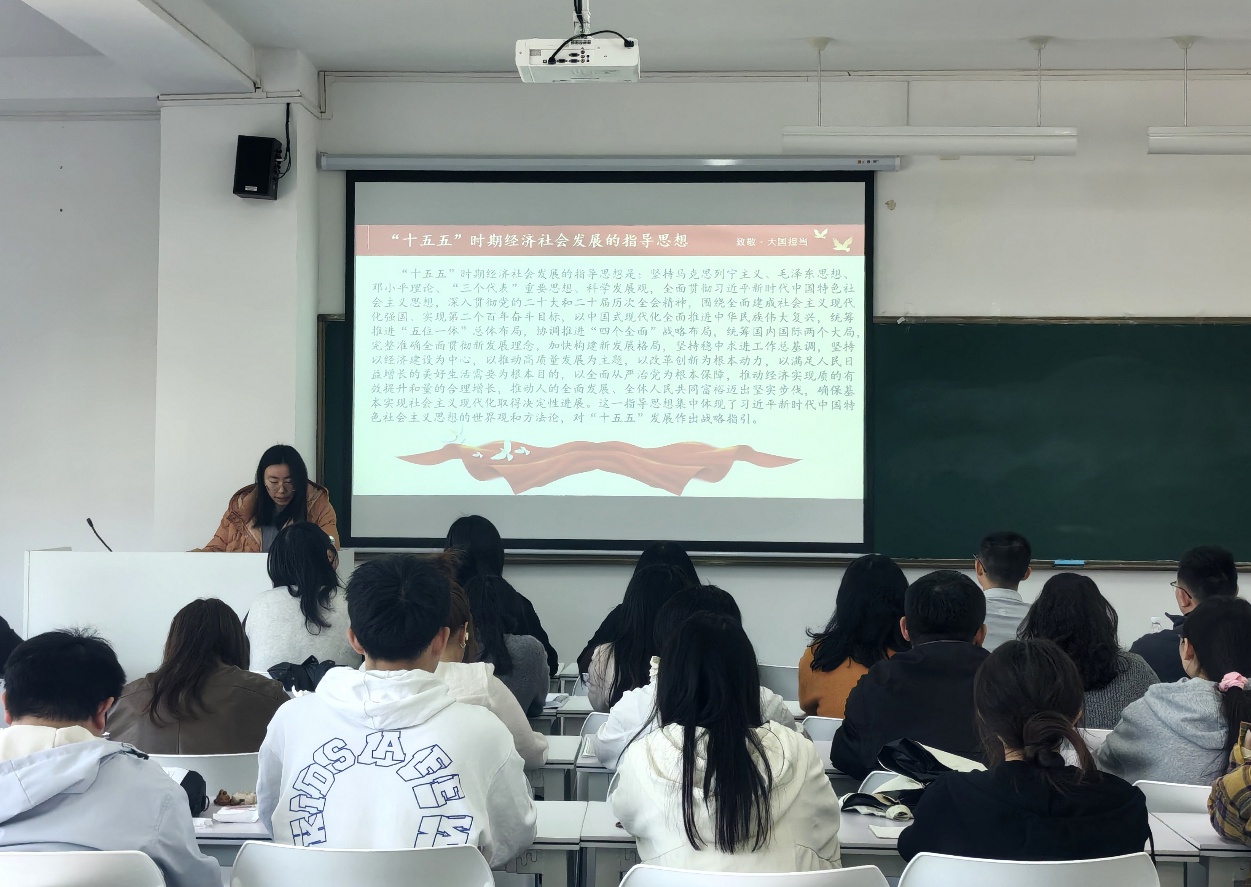 为深入学习贯彻全国两会精神,引导支部师生精准把握“十五五”时期发展蓝图,2026年3月26日,会计学院第九党支部组织开展“奋力开创中国式现代化建设新局面——从全国两会看‘十五五’规划新图景”主题党日学习活动。本次学习活动由段玥同志主讲,党支部全体党员及入党积极分子参加学习。