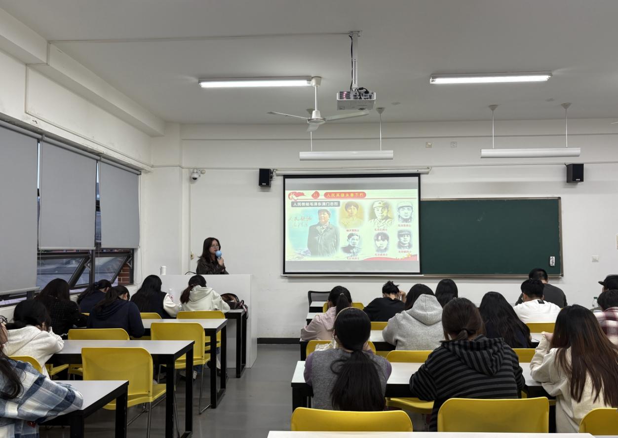 宣讲现场,会计学院第二党支部教师杨蕊菡以清明祭英烈为切入点,围绕人民英雄永垂不朽、先烈遗志铭记传承、青年雄起民族复兴三大板块展开系统宣讲。从土地革命战争的烽火连天、抗日战争的浴血奋战,到解放战争的波澜壮阔、抗美援朝的保家卫国,再到对印、对越自卫反击战与珍宝岛自卫反击战的捍卫主权,宣讲全面回顾中华民族争取独立、反抗侵略的壮阔历程。同时,生动讲述杨靖宇、赵一曼、狼牙山五壮士、八女投江、董存瑞、黄继光、邱少云等革命先烈宁死不屈、舍生取义的英雄事迹,以及和平年代王伟、万金刚、张楠等烈士守护家国安宁的感人故事,深刻阐释人民英雄是民族的脊梁、精神的丰碑。本次宣讲还结合人民英雄纪念碑碑文,引导同学们深刻感悟英烈精神的时代内涵,让大家在沉浸式学习中接受一场直击心灵的红色教育。