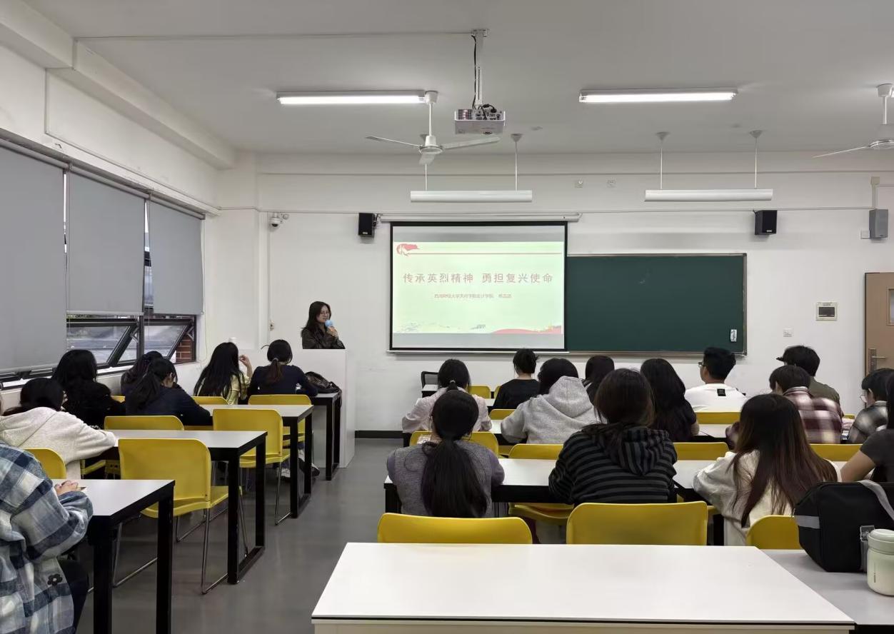 传承英雄千秋气,笃行复兴万里程。4月13日,西南财经大学天府学院会计学院第二党支部学生党建办公室红色蒲公英宣讲团组织开展以“传承英烈精神,勇担复兴使命”为主题的专题宣讲活动。本次活动共有50名同学参与,有效激发青年学子的爱国热情。