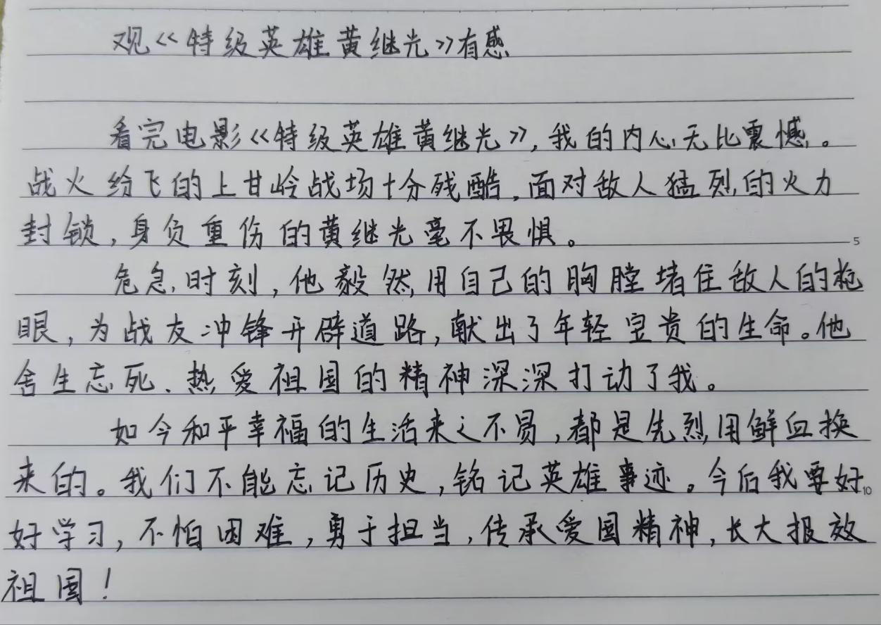 笔端抒壮志,笃行践初心。观影结束后,同学们纷纷结合自身感悟撰写心得体会,在文字中抒发对英雄的崇敬之情,深化对英雄精神时代内涵的理解。此次活动以光影为媒介、以感悟为延伸,推动红色教育走深走实,让英雄精神真正入脑入心、落地生根。