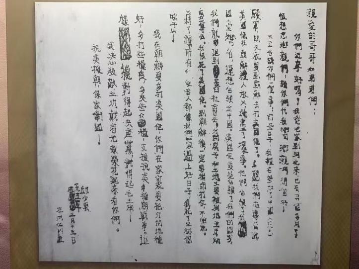 邱少云写给家人的信 图源:学习强国《英雄往事 战地家书|邱少云:带着光荣花回来看你们》
