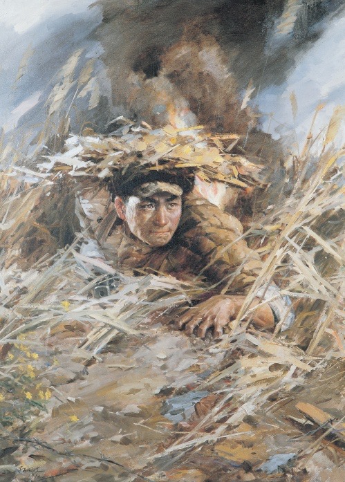 油画作品《邱少云》图源:学习强国《每日鉴赏孙国岐〈邱少云〉》