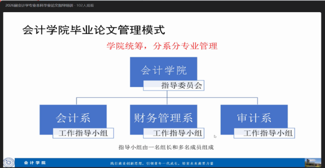 为进一步提升本科毕业论文指导质量,明确各环节要求,确保2026届会计学专业毕业论文工作顺利开展,会计系于10月21日13点线上召开2026届会计学专业本科毕业论文指导教师培训会。会议由会计系副主任左爱玲主持、会计系骨干教师阮秋玲主讲,会计系论文指导教师参会。