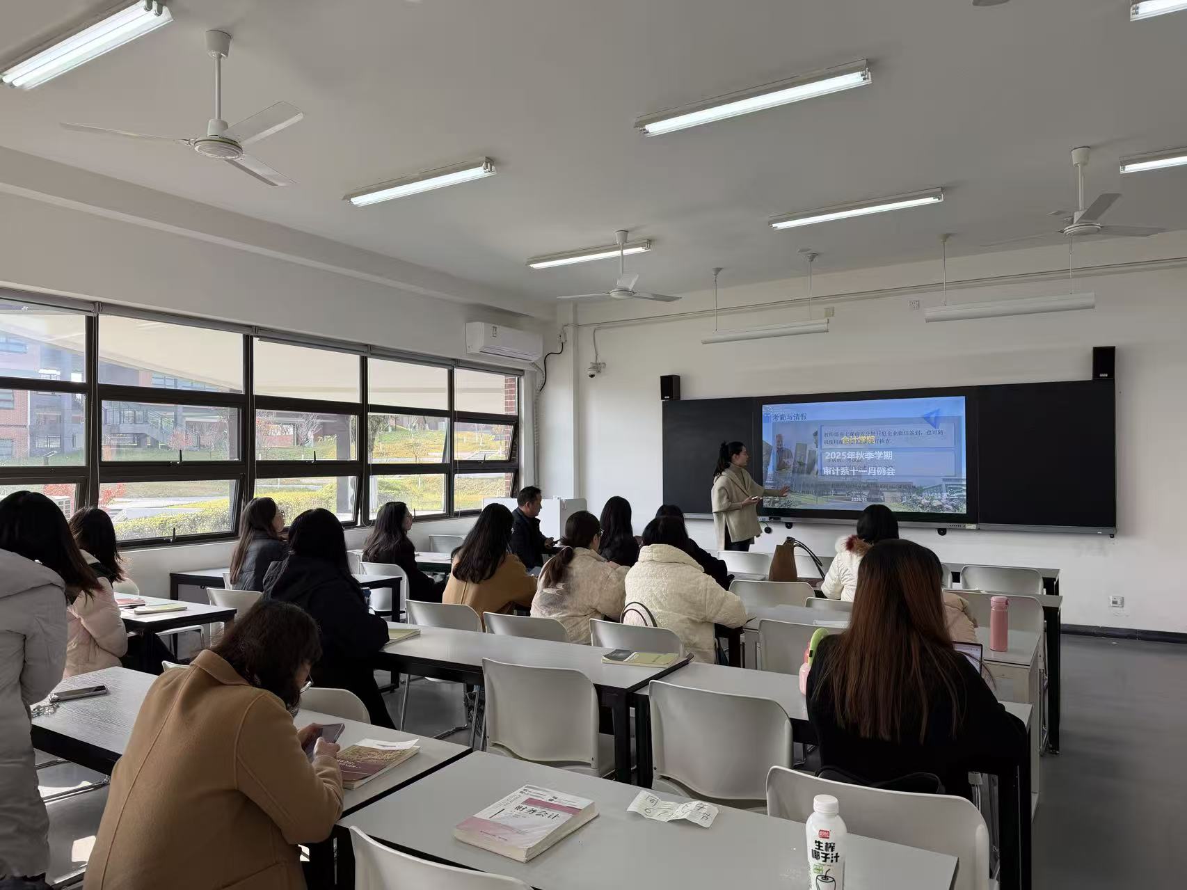 为全面落实学校教风学风建设,规范课堂管理秩序,筑牢教职工安全防线。2025年11月26日下午,会计学院审计系在德阳校区C206教室召开了2025年秋季学期11月例会,会议由审计系主任付晨主持,审计系全体教师参会。