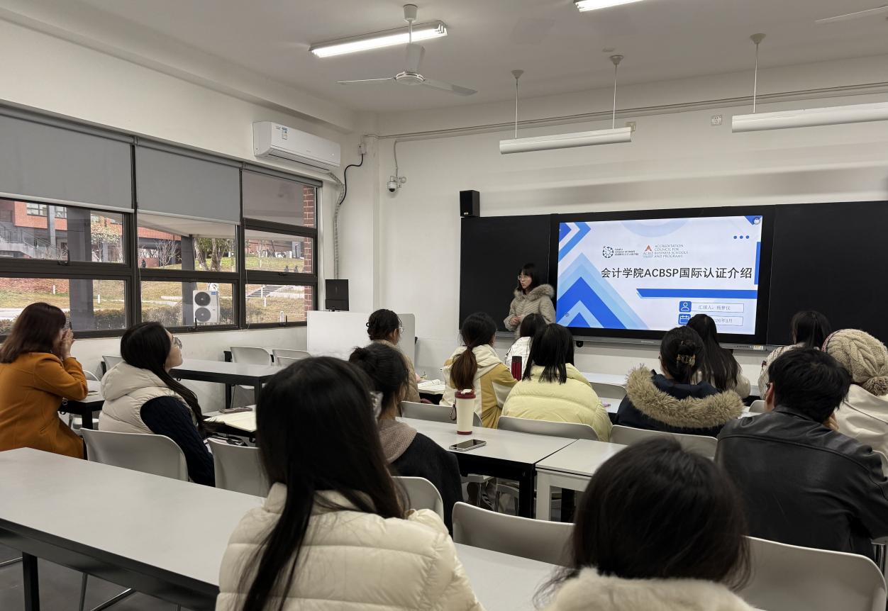 紧接着,杨梦仪围绕ACBSP国际认证进行专题介绍,讲解了认证对学院接轨国际商科教育准则、提升人才培养市场竞争力的重要意义。她详细阐释了七大认证标准及以数据分析为核心的认证逻辑,明确了教师在认证工作中需做好课程目标与认证标准衔接、掌握科学评价方法、创新教学模式等重点任务,帮助新教师快速明晰认证工作的开展方向,推动日常教学实践精准对接国际教育标准。
