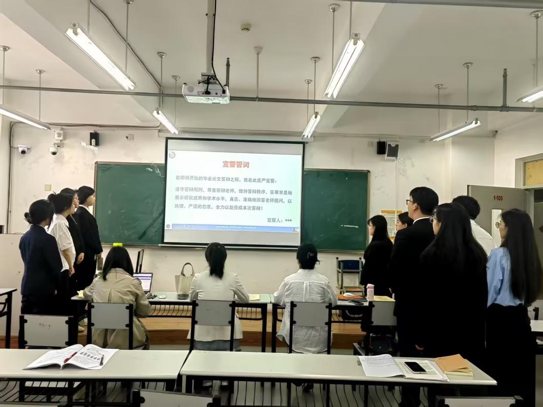 答辩开始前,全体答辩学生面向评审教师庄严宣誓,坚守学术诚信、恪守学术规范,以严谨态度完成答辩各项环节,彰显会计学院学子求真务实的治学品格。
