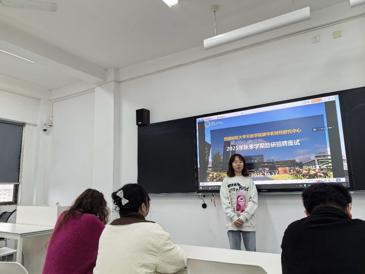 为深化人才培养模式改革,构建师生科研共同体,西财天府碳中和财经研究中心于2025年10月23日在德阳校区成功举办科研助理招聘面试活动。本次活动立足“三维一体”体系人才培养理念,致力于为有志投身“双碳”领域学习与实践的学生搭建优质的平台。