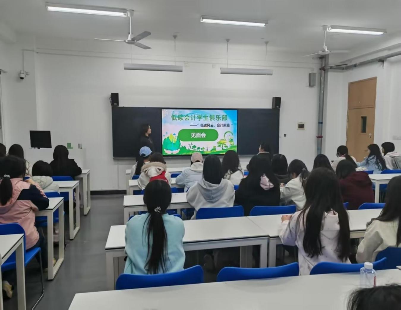 见面会伊始,俱乐部社长徐璟璇简要介绍了俱乐部发展历程,总结了过往学术实践成果,在拉近新老成员距离的同时,营造了同心同向、共促发展的良好氛围。俱乐部指导老师史卜宇强调,俱乐部要全力推动低碳会计理论研习与实务应用深度融合,助力学子提升专业素养、拓宽学术视野。她还号召广大同学踊跃参与俱乐部管理工作,主动发挥自身优势,以主人翁姿态为俱乐部建设添砖加瓦。