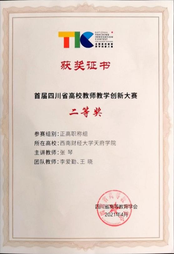 张琴老师带领团队课程借助信息技术的快捷性和高效性,课堂教学的直观性进行混合式课程建设。秉承“知行合一、育人育才”教学理念,遵循“导向职业化、职业案例化、案例情境化”的“三化”设计思路,确定“职业能力”为导向的课程目标,师生共建线上线下对接、课内课外迁移为特征的基础性、拓展性和动态生成的多层资源。构建学生学业水平个性化五维分层动态评价系统,追踪评价教学过程,激发学生内驱力,搭建“资源共建、方法多元、闭环反馈、评价多维”技术融合式的课程建设路径。课程先后被认定为学校首批省级应用型示范课和本科一流课程示范课。获首届四川省高校教师教学创新大赛二等奖和教学活动创新奖。