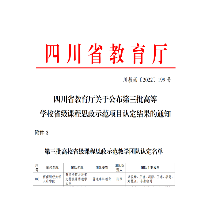 “会计不仅是技术,更是责任。”张琴将思政元素巧妙嵌入专业教学:2020 年,《财务报表分析》获批四川省课程思政示范课程,2021年她本人被四川省授予“优秀共产党员”称号。2022年,她主持“财务决策与决策支持类课程教学团队”获批省级课程思政示范教学团队,近五年团队教学覆盖学生逾万人,教学得到一致好评。