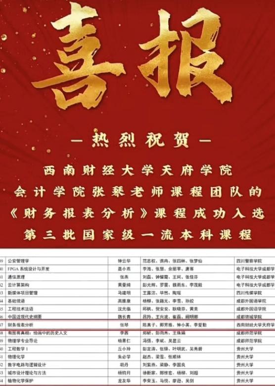 2025年,《财务报表分析》课程被认定为第三批国家级一流本科课程。