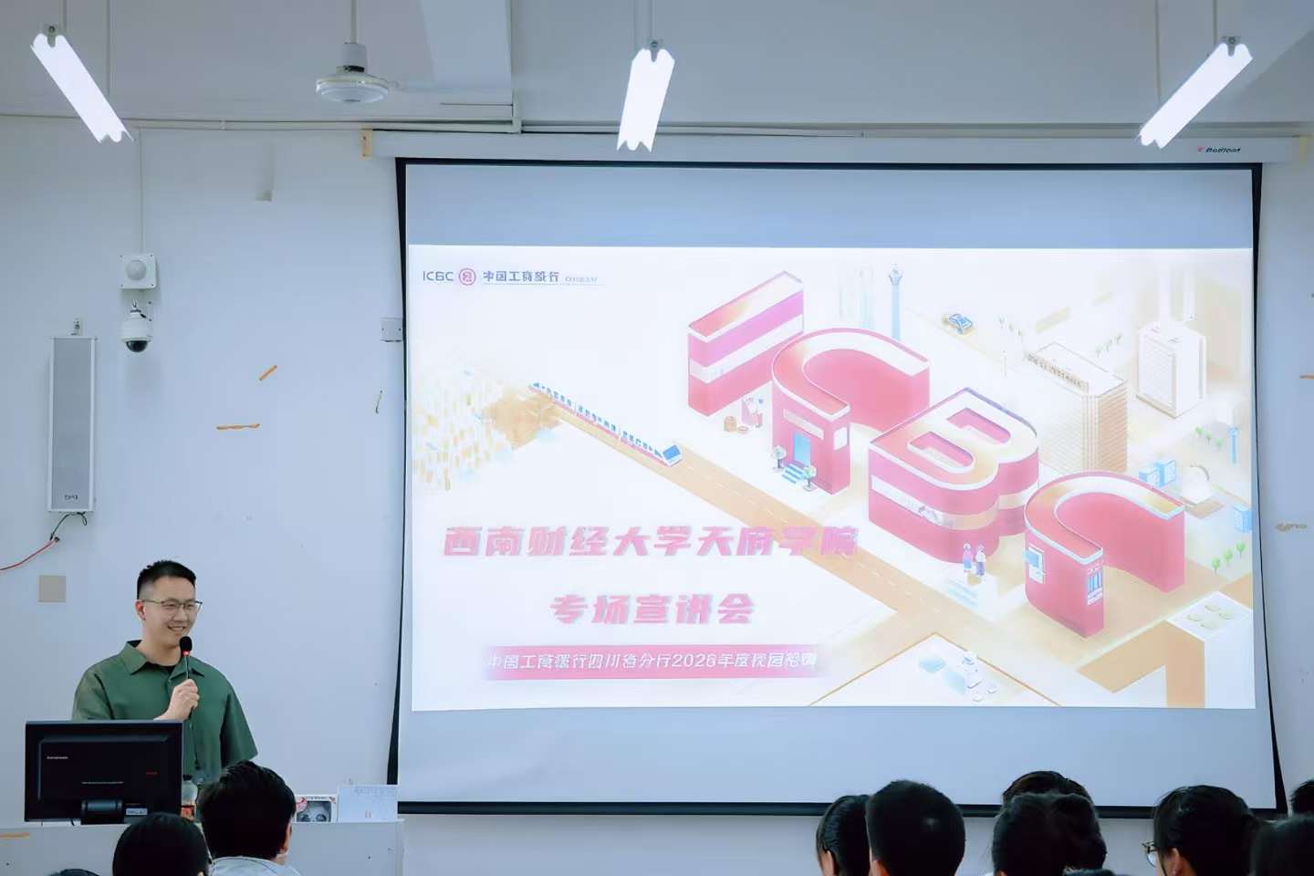 为抢抓秋季招聘黄金窗口,9月15日上午,会计学院就业促进会组织218 名2026届学院毕业生在成都西区1-201教室参加中国工商银行股份有限公司成都分行校园专场招聘会。负责人介绍公司情况招聘会上,工商银行四川省分行负责人首先发布2026届校招计划,招聘方向覆盖公司星辰管培生、金融通才、科技菁英、客服经理等多个领域,并结合工资薪酬、员工福利、个人...