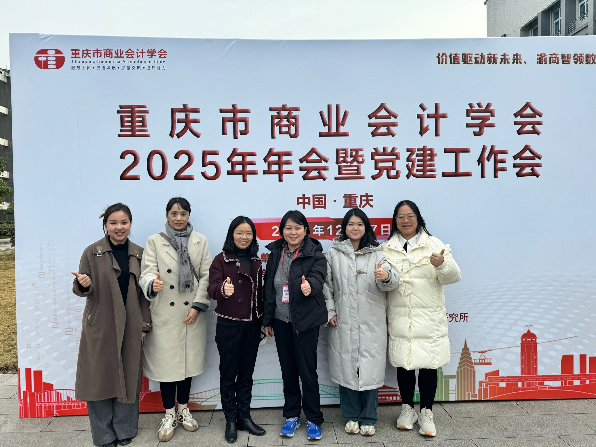 12月27日,重庆市商业会计学会2025年年会暨党建工作会在重庆商务职业学院顺利召开,西南财经大学天府学院会计学院院长陈真子、副院长许静、陈茜以及教师李爱勤、陈语宣、周巧、杜姗受邀参会。西南财经大学天府学院会计学院参会教师合影本次年会以“价值驱动新未来,渝商智领数智潮”为主题,由重庆市商业会计学会主办,重庆商务职业学院承办,汇聚了会...