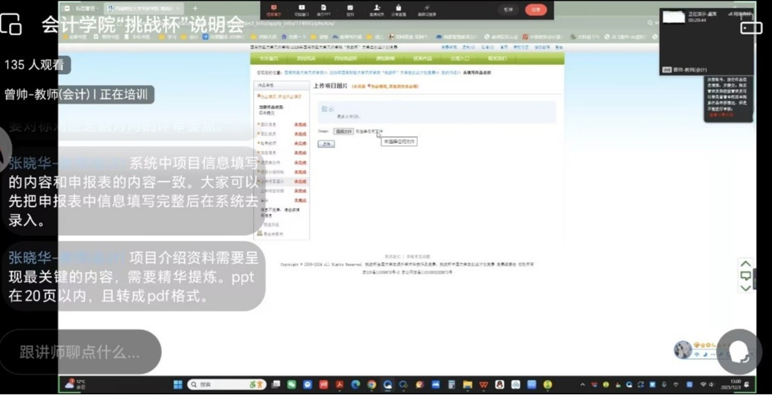 为积极备战2026年“挑战杯”大学生创业计划竞赛,充分激发学院学子创新创业热情,显著提升参赛项目质量,近日会计学院开展了赛事专项说明会。会议由会计学院教师曾帅主讲,会计学院指导老师和参赛学生参与此次说明会。“挑战杯”大学生创业计划会议现场会议初,曾帅首先回顾了“挑战杯”系列赛事在培养学生创新精神和实践能力方面的重要作用,强调了该...